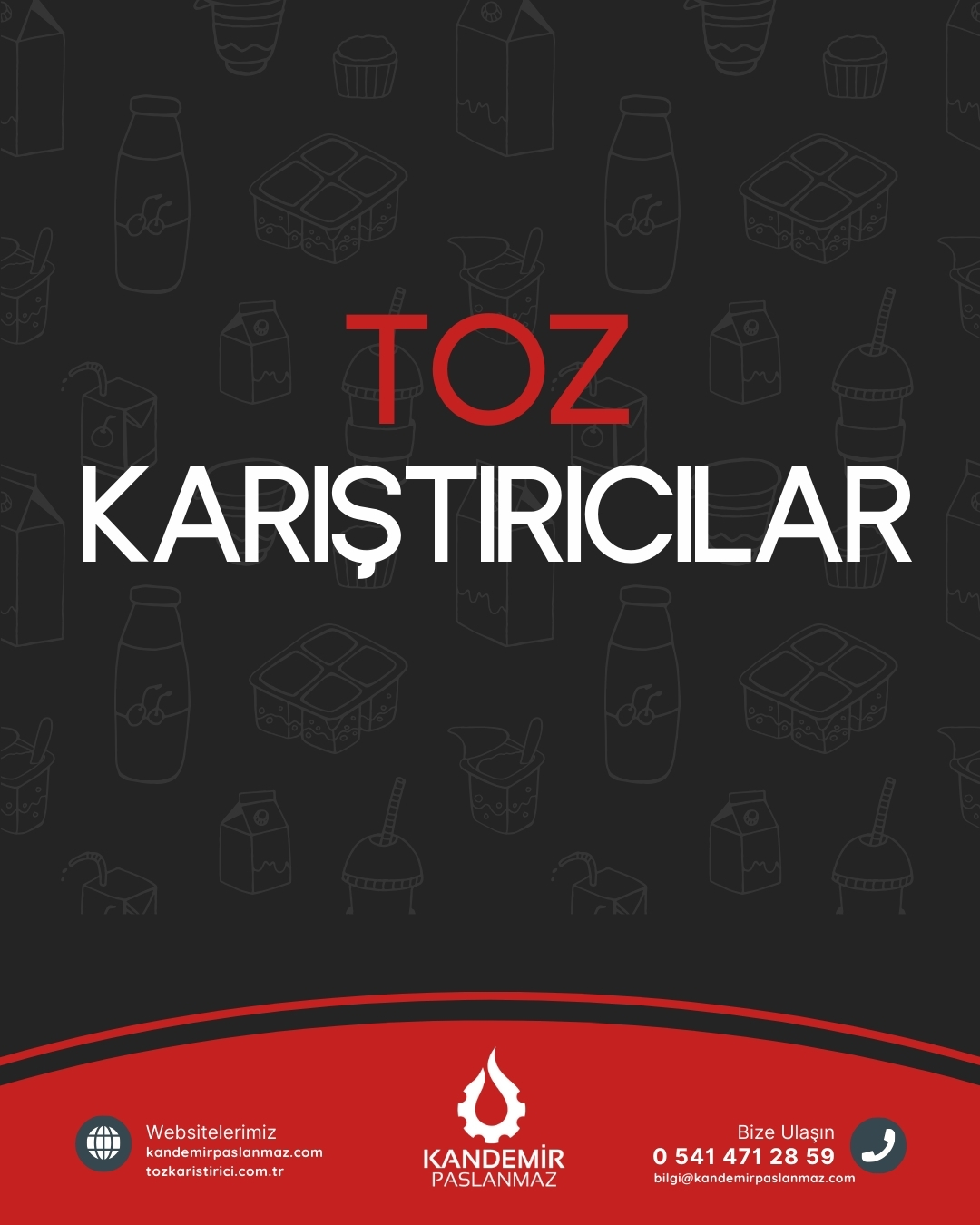 Kandemir Paslanmaz, özellikle toz ürünlerin işlenmesi ve homojen bir şekilde hazırlanması için farklı tip toz karıştırıcılar üretmektedir. Her ürünün ihtiyacına göre farklı çözümler sunan bu makineler, gıda, kimya, ilaç ve kozmetik sektörlerinde yaygın olarak kullanılmaktadır.