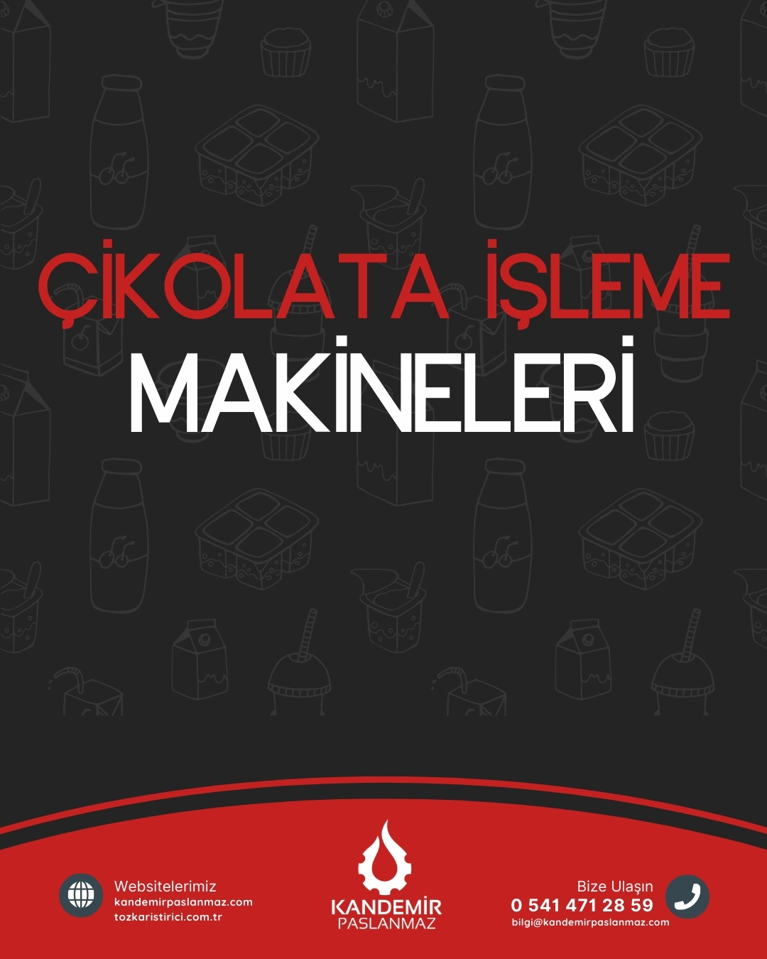 Çikolata İşleme Makineleri: Çikolata üretiminde kullanılan özel makineler, hijyenik ve dayanıklı yapısıyla işletmelere avantaj sağlar.