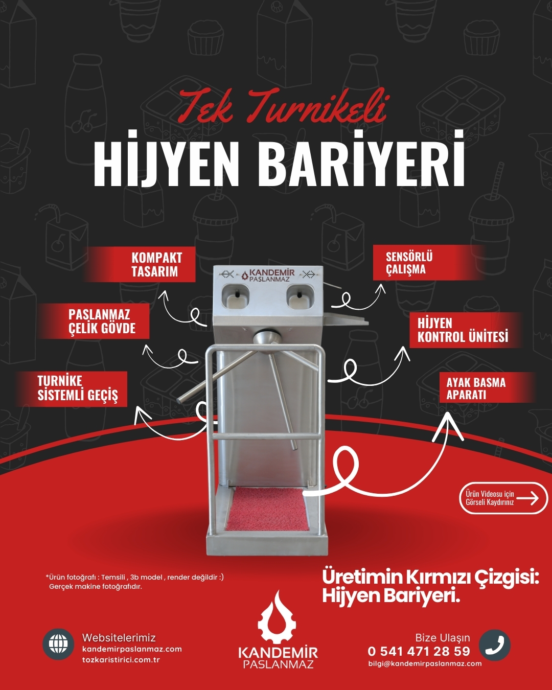 Hijyen Makineleri: Çalışanların üretim alanına girişlerinde hijyen standartlarını sağlamak için geliştirilmiş sistemlerdir.
