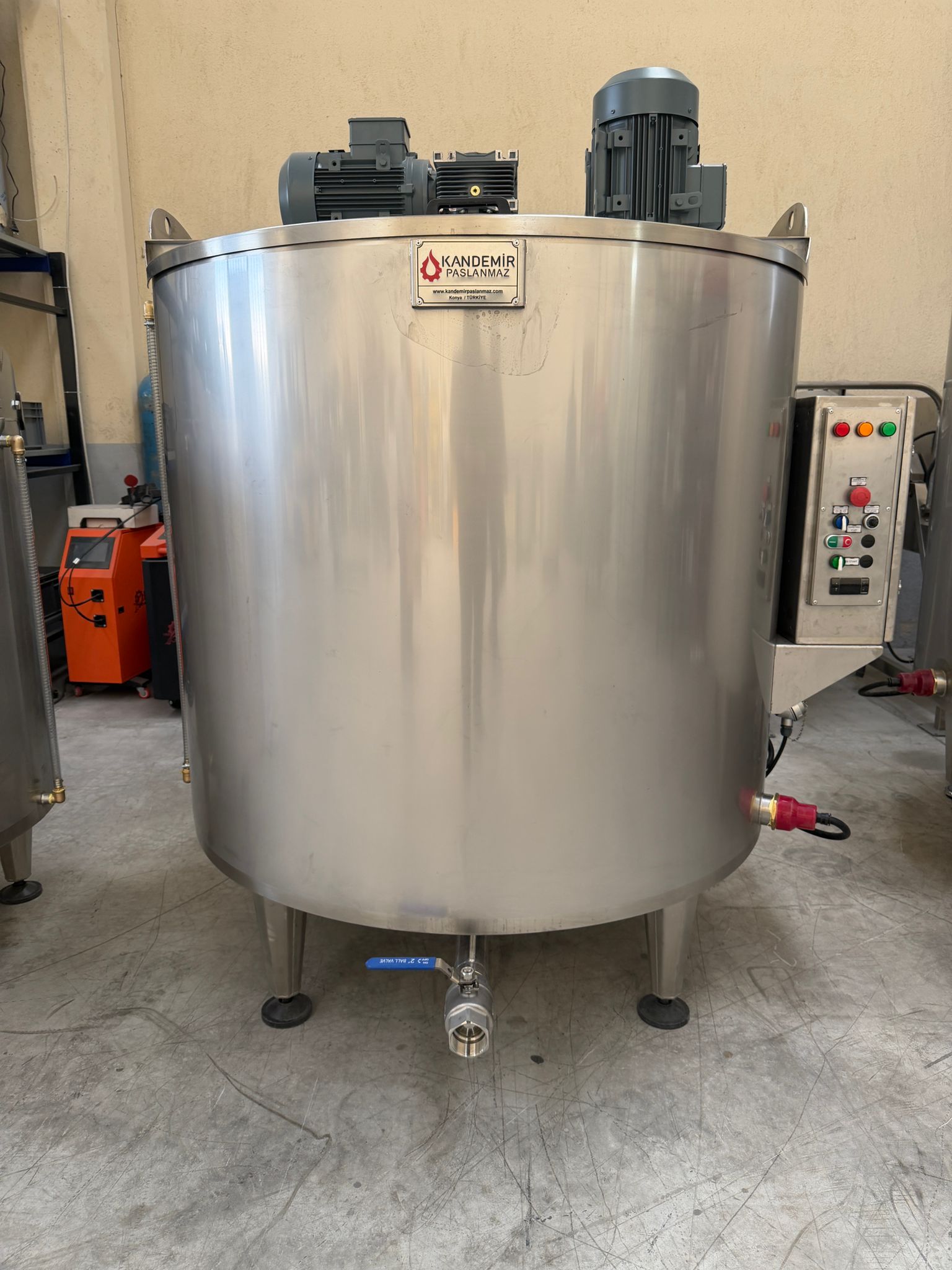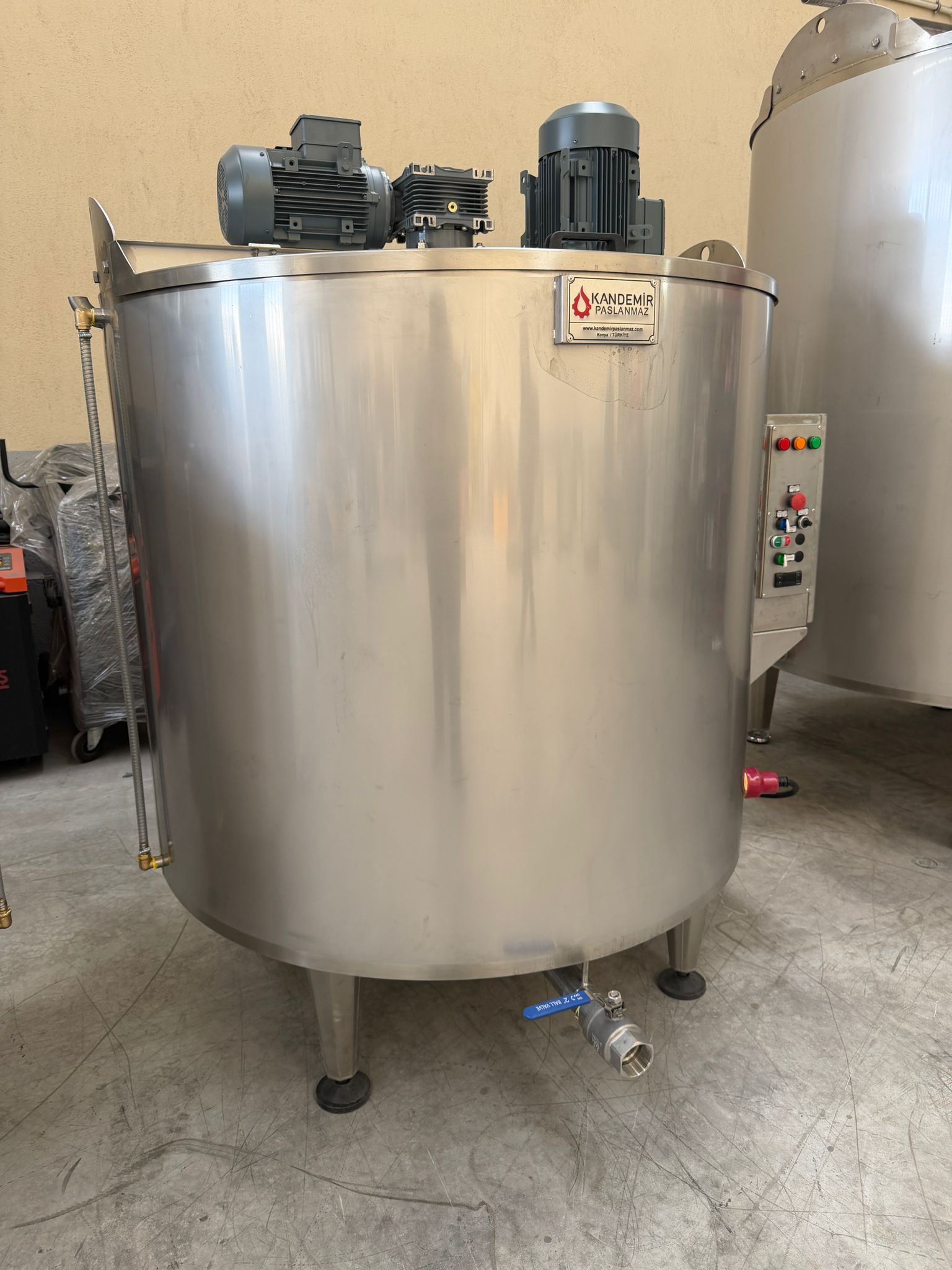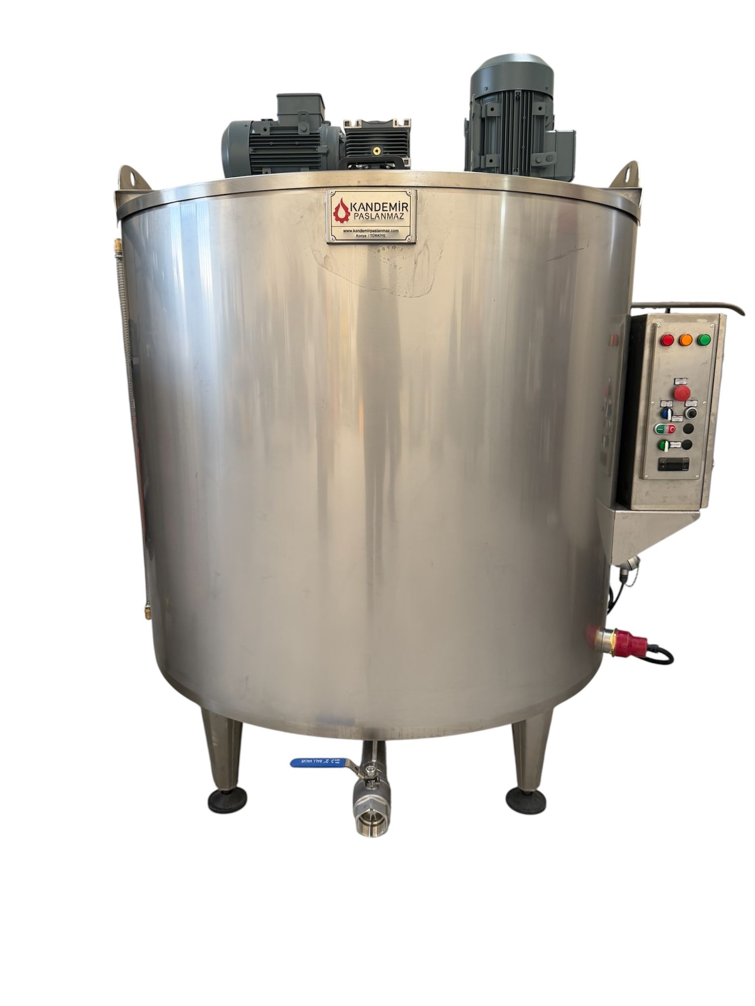 KP-ISK-1500, 1500 litrelik kapasitesiyle sıvı ürünlerin ısıtılarak karıştırıldığı prosesler için özel olarak geliştirilmiştir. Gıda, kimya, kozmetik ve ilaç sektörlerinde yaygın olarak kullanılmaktadır. Çift cidarlı yapısı sayesinde su veya yağ banyosu ile güvenli ve homojen ısıtma sağlar. Termostat kontrollü ısıtma ünitesi, sıcaklığın sabit tutulmasını mümkün kılar. Redüktörlü karıştırıcı motoru, ürünün sürekli akışkan kalmasını ve homojen karışım elde edilmesini sağlar. Paslanmaz çelik gövdesi, hijyenik kullanım ve uzun ömür sunar. Alt tahliye vanası kolay boşaltma ve temizlik imkânı sunarken, izolasyonlu dış ceket enerji verimliliği sağlar. Seviye sensörü ve CIP sistemi gibi opsiyonel özelliklerle otomasyon sistemlerine kolay entegrasyon sağlanabilir.