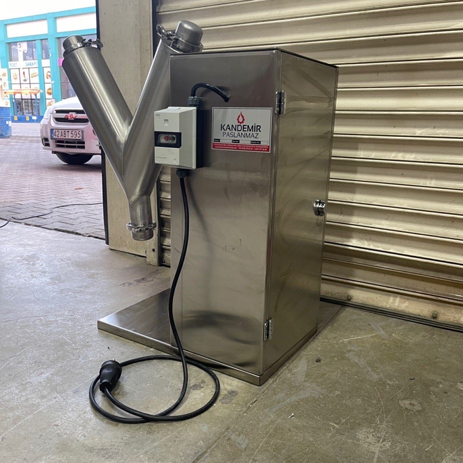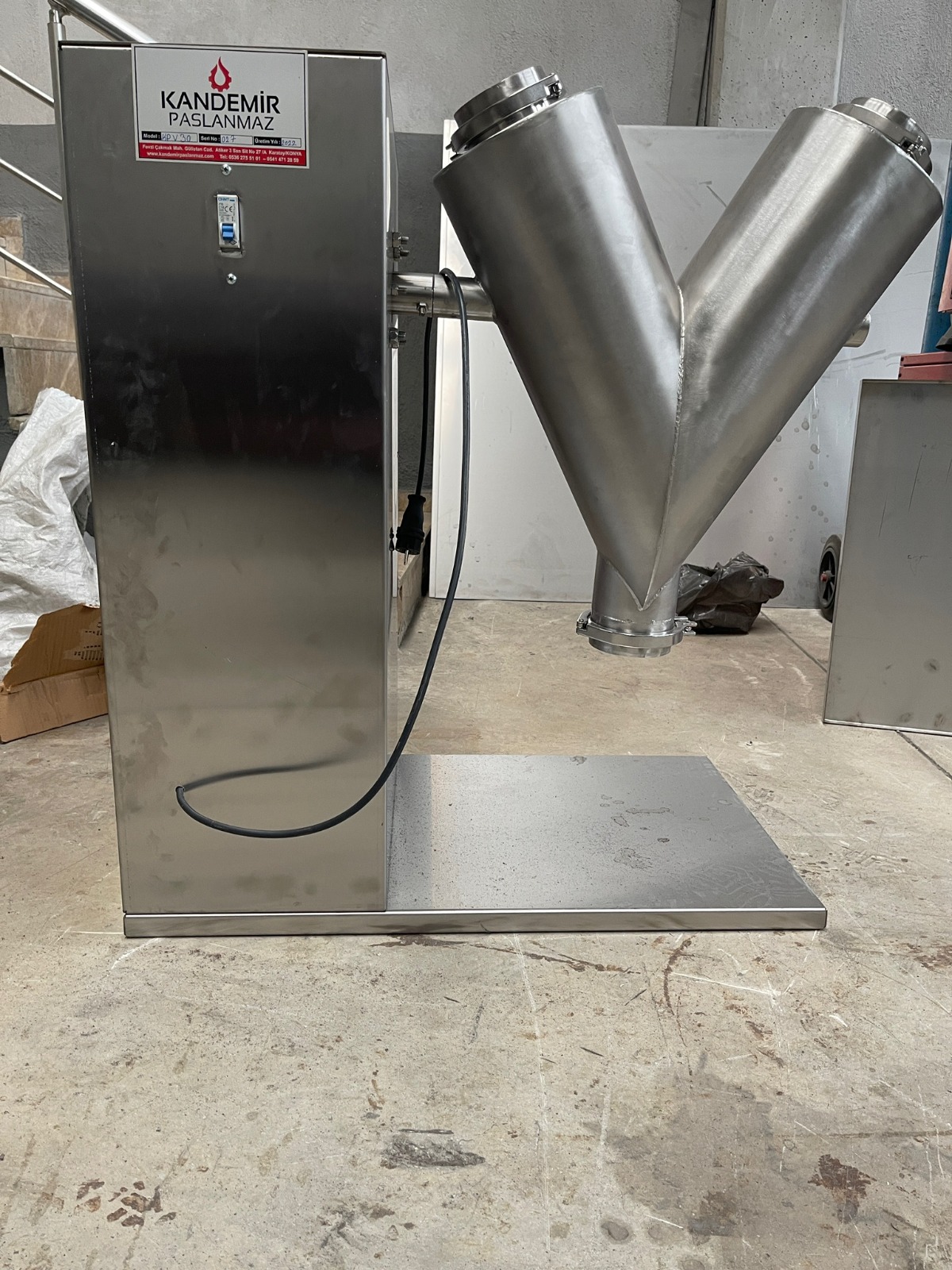 KP-VTK-LAB modeli Laboratuvar Tipi V Toz Karıştırıcı, Ar-Ge ve küçük ölçekli üretim süreçlerinde toz ve granül hammaddelerin homojen karışımı için tasarlanmıştır. Kompakt yapısı sayesinde sınırlı alanlarda dahi etkin kullanım sağlar. V tipi tambur ve 360° dönüş özelliği ile kısa sürede dengeli ve etkili karışım elde edilir. AISI 304 kalite paslanmaz çelikten üretilmiş yüzeyleri hijyen ve uzun ömür sunar. İlaç, gıda, kimya ve kozmetik sektörleri için ideal çözümdür.