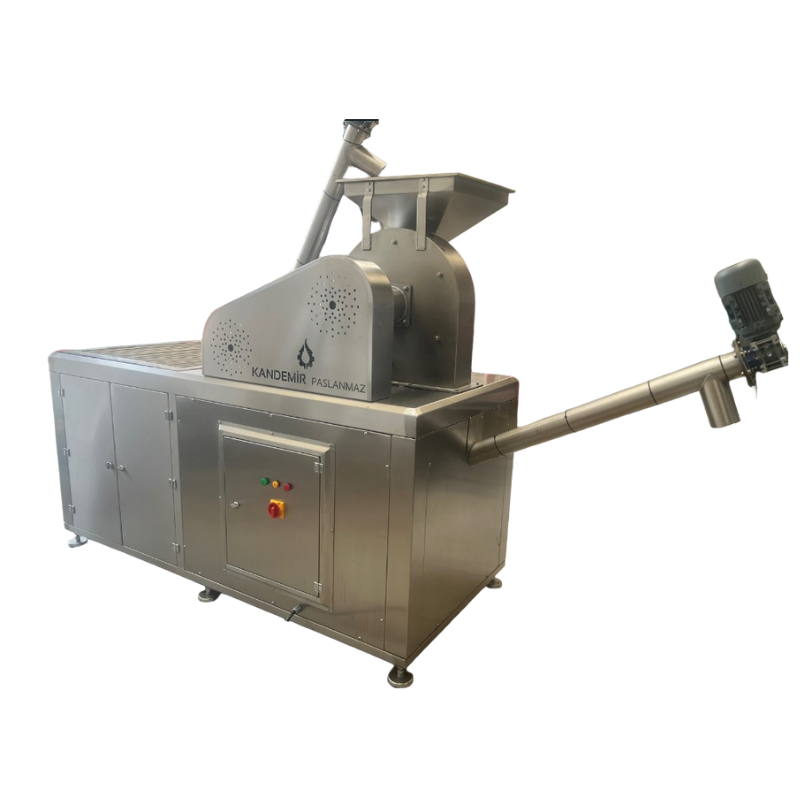 KP-PSD-1000 modeli Pudra Şekeri Değirmeni, yüksek kapasiteli öğütme ihtiyaçları için geliştirilmiş endüstriyel bir çözümdür. Saatte 1000 kg üretim kapasitesiyle toz şekeri 80–120 mikron aralığında hassas şekilde öğütür. Motorlu helezon besleme ve çıkış sistemi, ürünün doğrudan torbalama veya üretim hattına aktarımını sağlar. IP65 korumalı pano, termik ve acil durdurma özellikleriyle güvenliği artırır. Kapalı devre toz koruma sistemi ve kolay sökülebilir parçalarıyla hijyen ve bakım avantajı sunar. Yüksek verim ve hijyen standartlarını bir arada sunar.