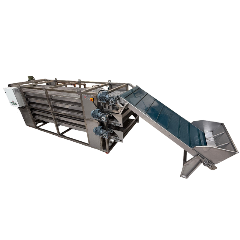 KP-KB5 modeli 5 Raflı Ürün Nemlendirme ve Kurutma Bandı, gıda, kimya ve tarım sektörlerinde ürünlerin nemlendirme veya kurutma işlemlerini kontrollü ve hijyenik şekilde gerçekleştirmek üzere tasarlanmıştır. Modüler yapısı sayesinde ürünler katmanlı olarak işlenir ve işlem süresi optimize edilir. Her kat bağımsız tahrik sistemiyle donatılmış olup, farklı ürün ve proses gereksinimlerine göre sıcak hava, buhar, nem püskürtme veya UV destekli sistemlerle entegre edilebilir. Enerji verimli tasarımı ve kolay temizlenebilir yapısıyla uzun ömürlü ve yüksek performanslı bir çözümdür.